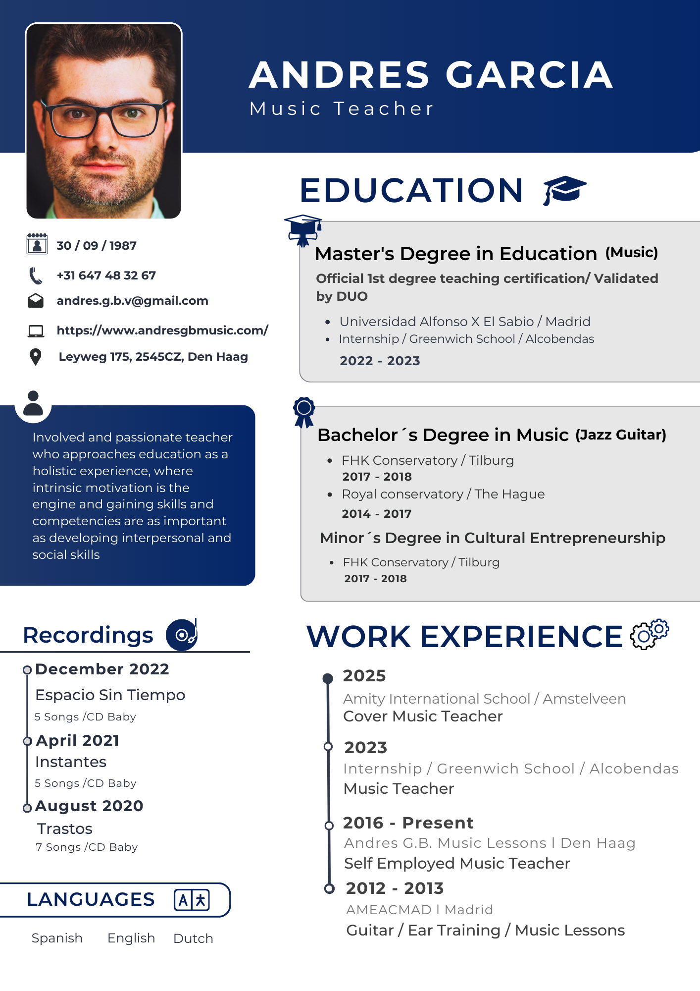 I'm Andres Garcia Blasco, a dedicated guitar enthusiast with a passion for teaching.