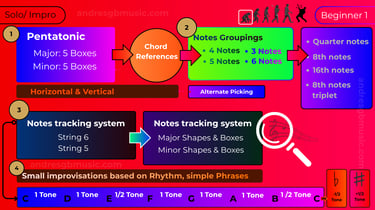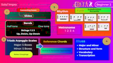 Master all the knowledge and skills you need for soloing, structured across six progressive levels. This roadmap helps you clearly identify what you already know, discover what you're missing, and guide you toward what to learn next.