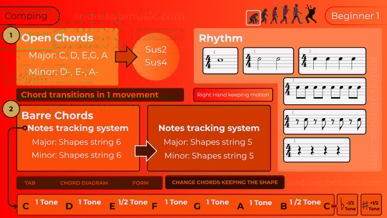 Master all the knowledge and skills you need for comping, structured across six progressive levels. This roadmap helps you clearly identify what you already know, discover what you're missing, and guide you toward what to learn next.